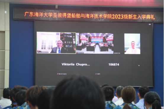 9月13日上午,williamhill中国2023级新生入学典礼在水生生物博物馆报告厅举行。学院联合管理委员会中方成员、相关单位部门领导、电信(中俄)1231班和船海(中俄)1231班48名新生及联络员、辅导员和班主任现场参加活动,俄罗斯圣彼得堡国立海洋技术大学副校长基里尔·罗杰斯特文斯基、俄方授权代表欧亚国际协会会长冯耀武线上参会。学校党委书记杨洲出席并致辞,典礼由副校长高秀梅主持。