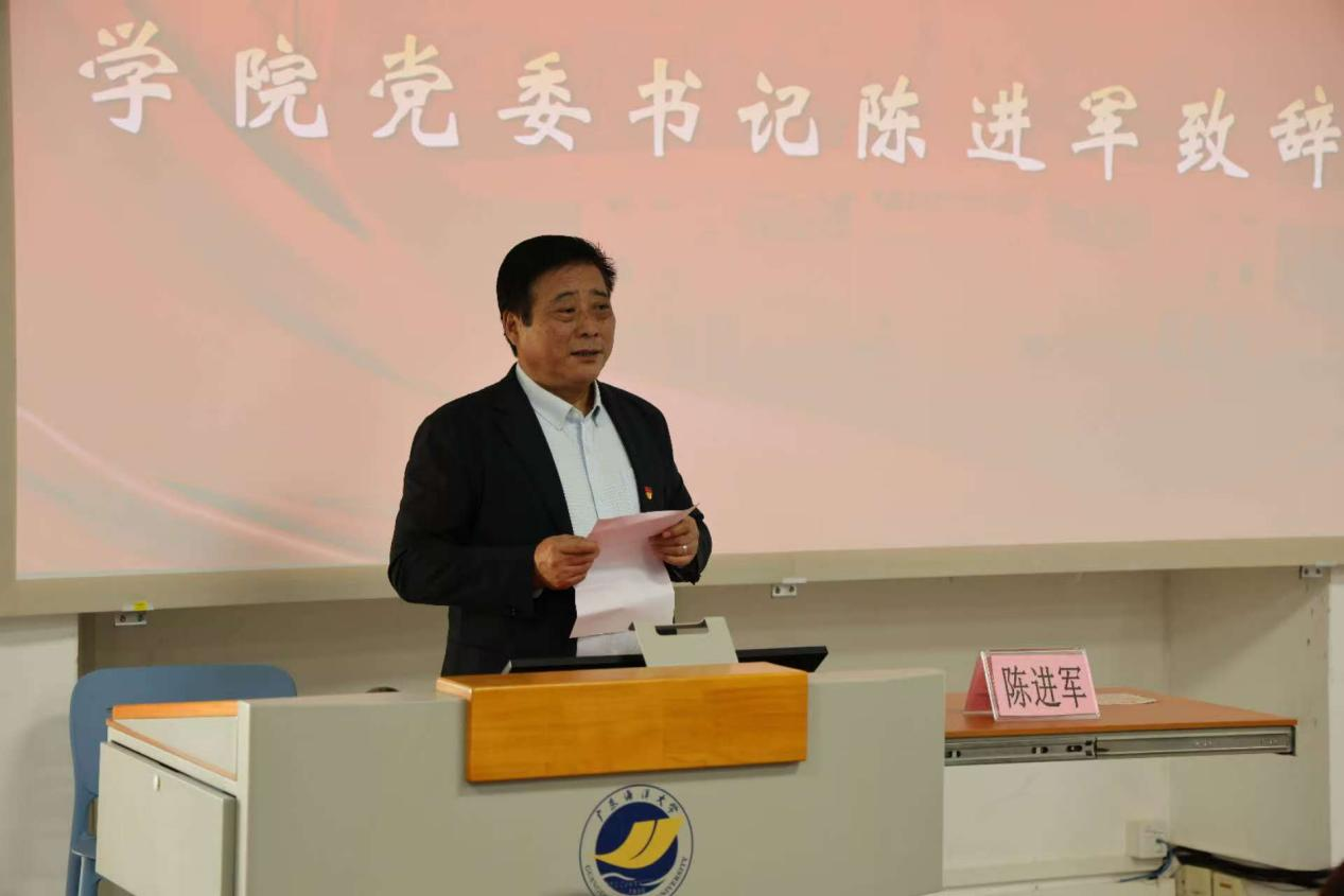 陈进军书记致开幕词,指出学院团委成立是学院共青团事业发展的重要里程碑,为青年工作搭建了更广阔平台。他对大会召开表示祝贺,肯定了上一届团学组织的工作成效,并向青年学子提出三点希望:一是坚定理想信念,强化政治引领,传递海大正能量;二是勇于担当作为,扎实钻研学识,投身实践服务,贡献青春力量;三是加强团结协作,发挥模范作用,共筑和谐向上的校园氛围。