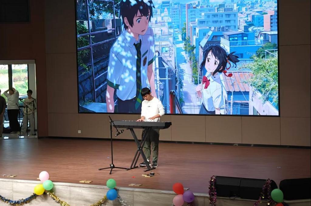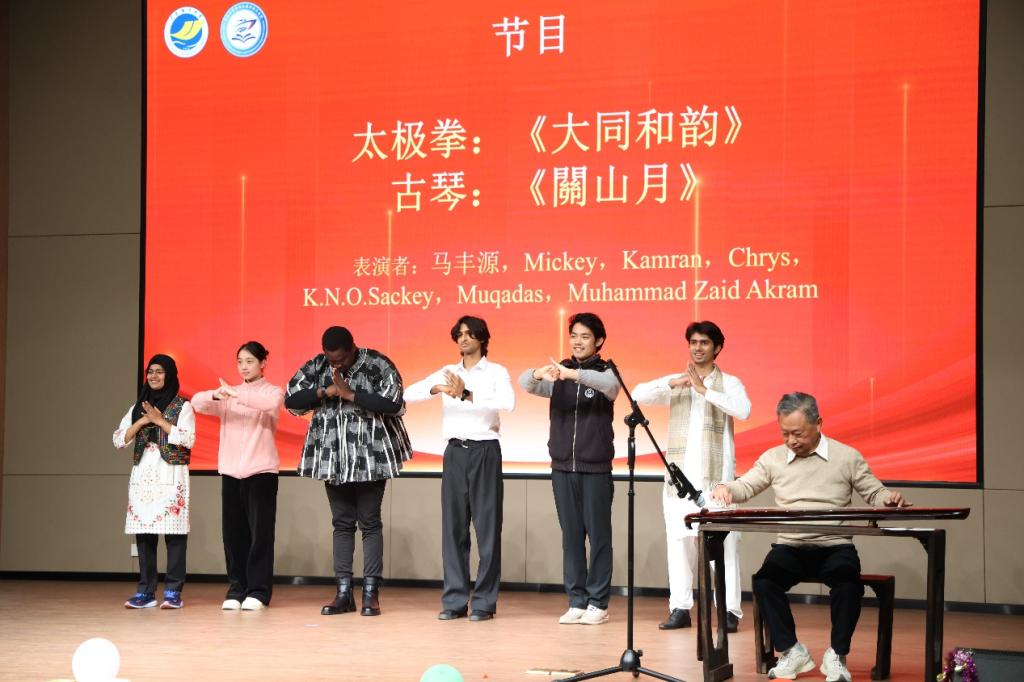 表彰过后,新年联欢晚会精彩上演。中外学生同台献艺,节目形式丰富多样,融合中华传统文化与国际风情。太极拳《大同和韵》、古琴《关山月》尽显中华传统韵味;俄语合唱《歌唱动荡的青春》、小组合唱《世界赠予我的》传递青春活力与多元文化魅力;钢琴曲《火花》、歌曲《My Love》《落叶归根》或明快激昂或温情脉脉;魔术表演与诗朗诵《假如生活欺骗了你》更是引发阵阵掌声。舞台上,中俄文化交相辉映,中外学子情谊深厚,生动展现了复合型人才培养特色与开放包容的办学氛围。晚会期间的互动抽奖与知识问答环节,进一步拉近了师生距离,现场气氛热烈融洽。